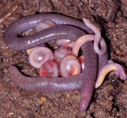 แม้ว่าเขียดงูบางชนิดจะออกลูกเป็นไข่ แต่เขียดงูส่วนใหญ่ออกลูกเป็นตัว โดยตัวอ่อนของเขียดงูจะกินอาหาร และได้รับสารอาหารจากท่อลำไข่ และเมื่อลูกเขียดงู คลอดออกมาพวกมันจะยังต้องอาศัยอยู่กับตัวแม่ เพราะแม่เขียดงูจะต้องมีหน้าที่เลี้ยงดูลูกโดยใช้เนื้อของตัวมันเอง เนื่องจากลูกเขียดงูที่คลอดออกมาใหม่ๆ จะมีเฉพาะฟันน้ำนมที่ไม่แข็งแรง ดังนั้นลูกเขียดงูจะต้องกัดแทะเนื้อหนังของตัวแม่เพื่อเป็นอาหารในการเติบโต จนกว่าฟันน้ำนมของพวกมันจะหลุดไป และมีฟันแท้ที่แข็งแรงกว่าขึ้นมาแทนเพื่อที่จะอาหารเองได้ ทำให้แม่เขียดงูต้องเสียสละและยอมเจ็บ ให้ลูกๆ แทะผิวหนังของตัวเอง อีกทั้งยังต้องมีหน้าที่ในการสร้างผิวหนังของตัวเองขึ้นมาเรื่อย เพื่อให้เพียงพอต่อการเลี้ยงดูลูกๆ ของมัน
