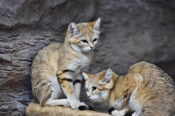 แมวทะเลทราย เป็นสัตว์บกที่เรียกได้ว่ามีความพิเศษมาก เนื่องจากอาศัยอยู่ในถิ่นทุรกันดาร ท้องทะเลทรายอันแสนร้อนอบอ้าว แมวทะเลทรายมีโครงสร้างร่างกายที่กะทัดรัด ขนาดเล็กที่สุดในโลก แต่เป็นสายพันธุ์ที่อึดถึกทน เท้าเต็มไปด้วยขนหนาที่ช่วยป้องกันความร้อนจากพื้นทราย มีทักษะการล่าที่ยอดเยี่ยมมาก ด้วยประสาทหูที่ไว จึงทำให้หาเหยื่อได้ง่าย สามารถทราบพิกัดเหยื่อได้ระยะไกล และดักซุ่มรอเพื่อโจมตี กินอาหารได้หลากหลาย และแตกต่างกับแมวป่า โดยแมวทะเลทรายสามารถอดน้ำได้เป็นเวลายาวนาน ไม่ต้องการน้ำมากในการดำรงชีวิต เนื่องจากน้ำที่ได้จากการกินเหยื่อก็เพียงพอแล้ว ปัจจุบันแมวชนิดนี้ไม่ได้ถูกจัดอยู่ในสัตว์เสี่ยงสูญพันธุ์ แต่อย่างไรก็ตามด้วยอุปนิสัยที่รักสันโดด ไม่ชอบสุงสิงกับใคร จึงทำให้มีจำนวนประชากรน้อย พบเจอได้ยาก ซ่อนตัวเก่งมาก เรียกได้ว่าเป็นนักล่าย่องเบาแห่งท้องทะเลทรายเลยทีเดียว หากใครไปเที่ยวทะเลทรายแล้วได้เจอน้อง ๆ ถือว่าโชคดีมาก เพราะไม่ได้ออกมาแสดงตัวบ่อย ๆ โดยเฉพาะกลางวันจะเป็นช่วงเวลาพักผ่อน และออกล่าเหยื่อในตอนกลางคืนเท่านั้น animal2you.com